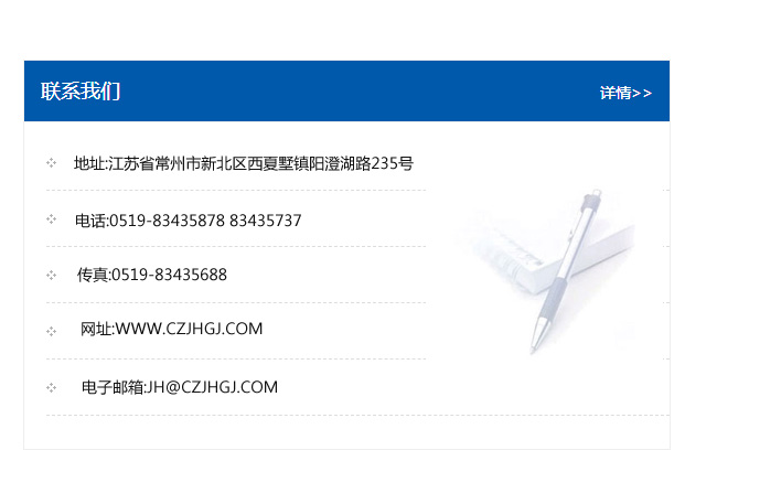 傳真:0519-83435688    郵編:213135    網址:WWW.czjhgj_com.gdskeli.com    電子郵箱:JH@czjhgj_com.gdskeli.com
